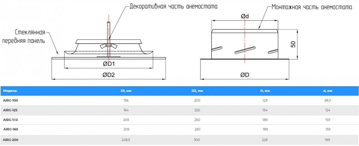 Тип:AIRG - Стеклянные дизайнерские анемостаты
