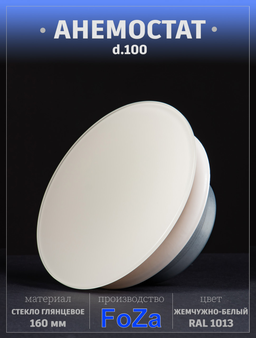Анемостат со стеклянной внешней частью FOZA D 100 мм. RAL 1013. Круглый