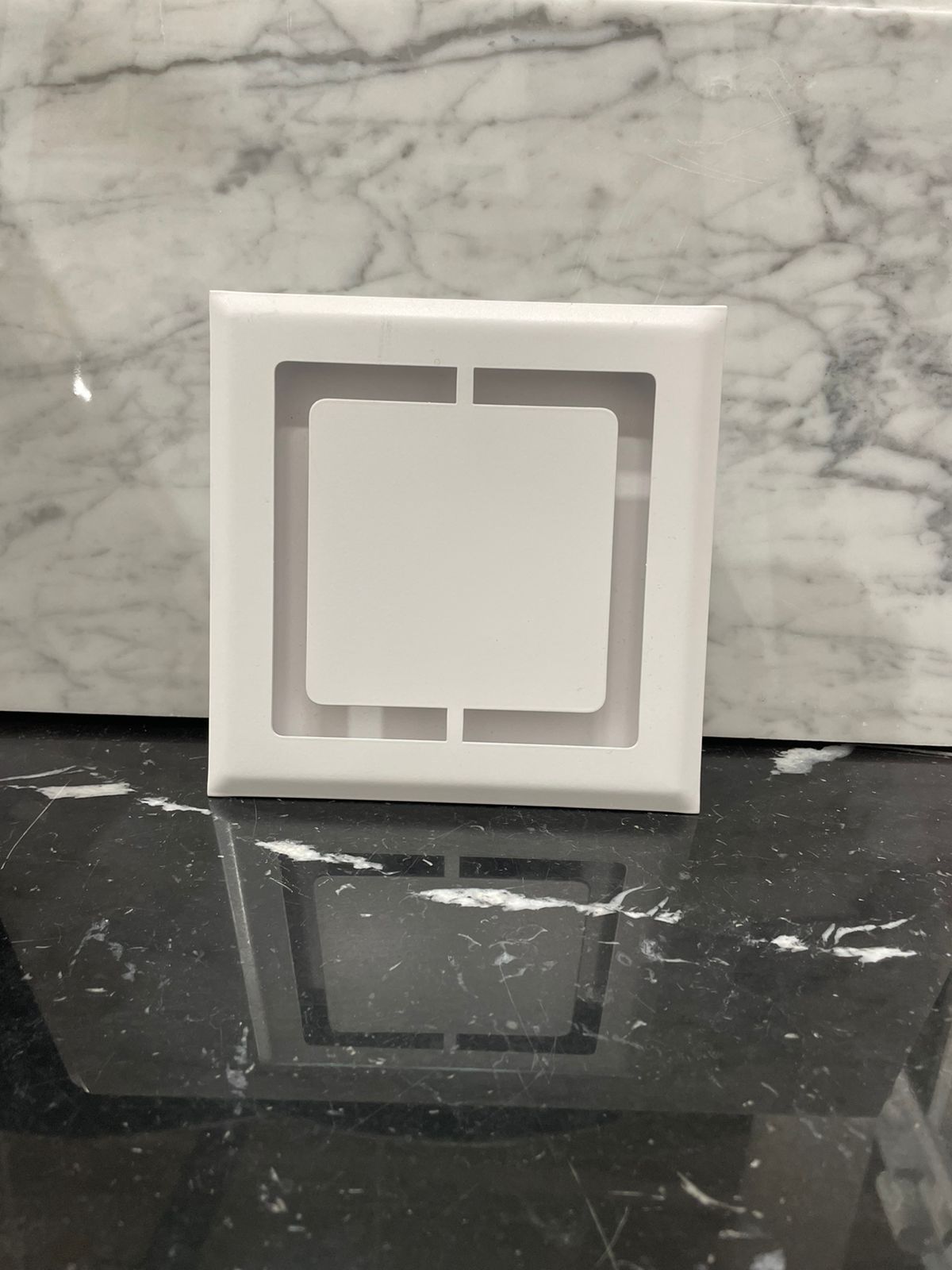 Рамка прикрепляется к стене или полотку при помощи саморезов или клея, а верхняя часть с глухой панелью фиксируется к рамке при помощи неодимовых магнитов.