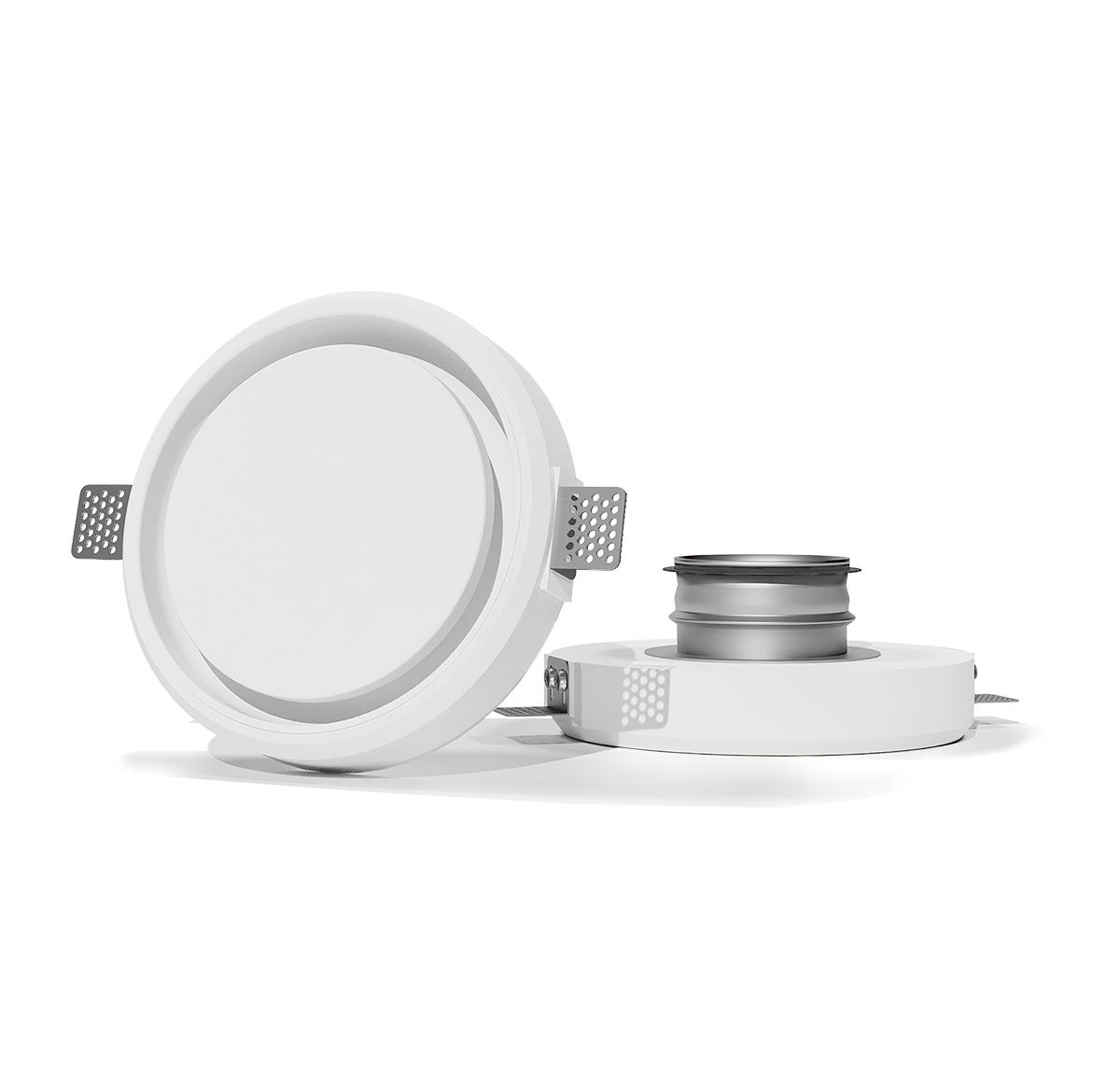 Дизайнерские диффузоры SECRET являются частью вентиляционной системы. Выполнены из гипсополимера, корпус диффузора монтируется в потолок или стену из гипсокартона, после покраски становится с потолком одним целым. Это поистине элегантное решение, сохраняющее функцию. Форма диффузоров позволяет принимать поток воздуха из вентиляционной трубы и плавно распределять его в помещение. Легко и герметично стыкуется с стандартными вентиляционными трубами диаметром 100, 125, 160 и 200 мм.