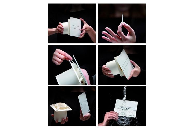 Дизайнерской изюминкой является фронтальная панель, выполненная из стекла, что позволяет использовать его в любых помещениях. Он - вентилятор для ванной комнаты и вентилятор для туалета. Вентилятор Вентилятор Cata E-120 GT (с таймером) гармонично вписывается под любую плитку.