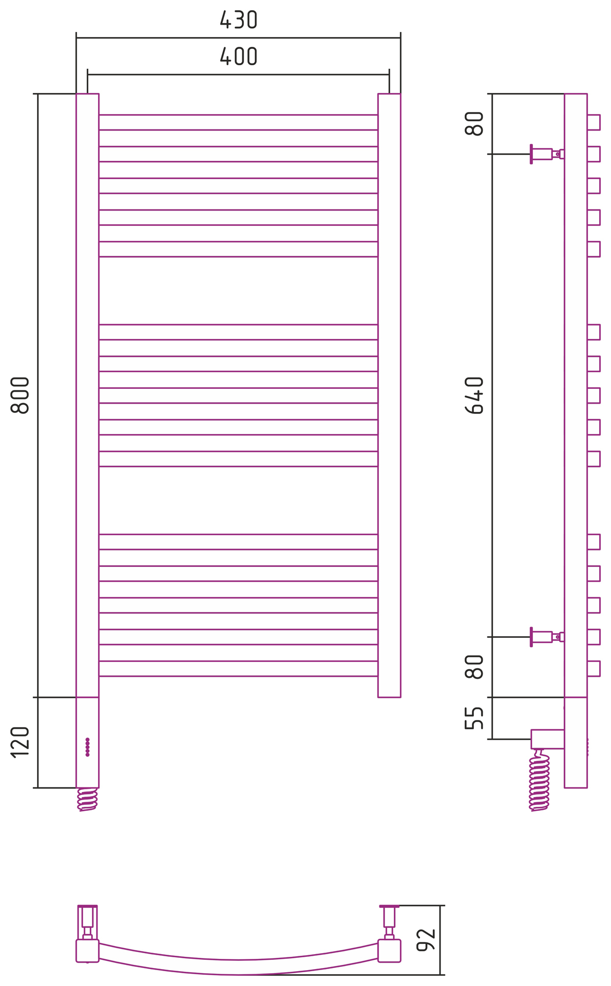 Полотенцесушитель электрический Сунержа Аркус 3.0 800x400