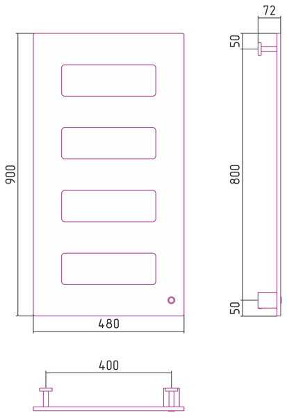 Внешние габариты (высота х ширина х глубина)(мм) : 900х480х72