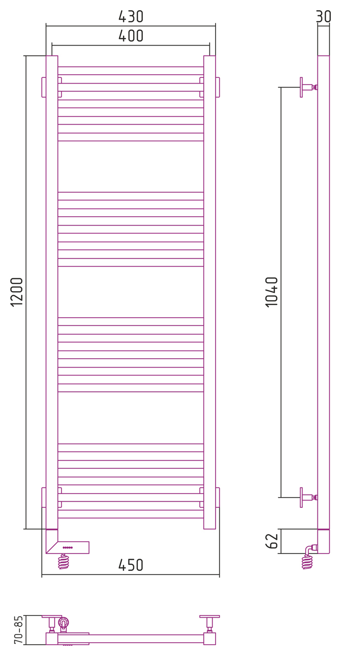 Внешние габариты (высота х ширина х глубина)(мм) : 1262x450x70-85