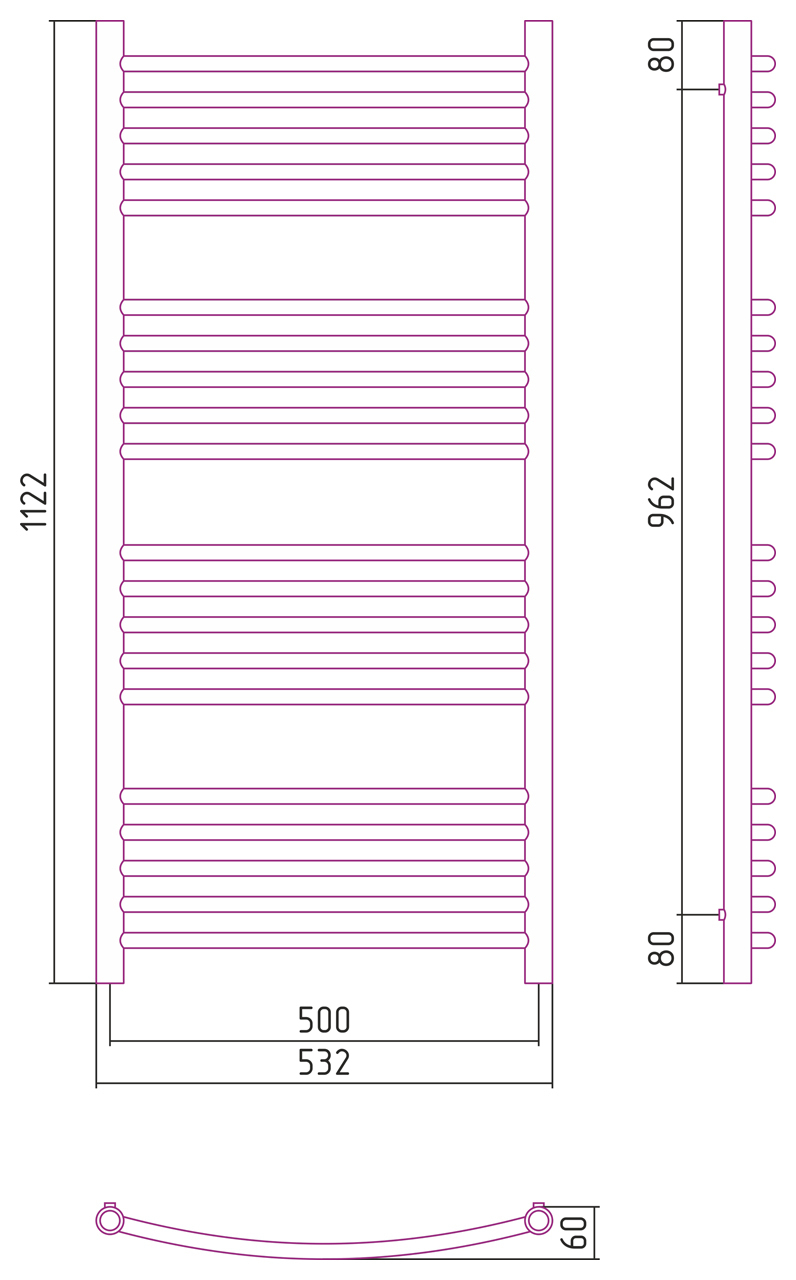 Внешние габариты (высота х ширина х глубина) (мм) : 1122x532x60