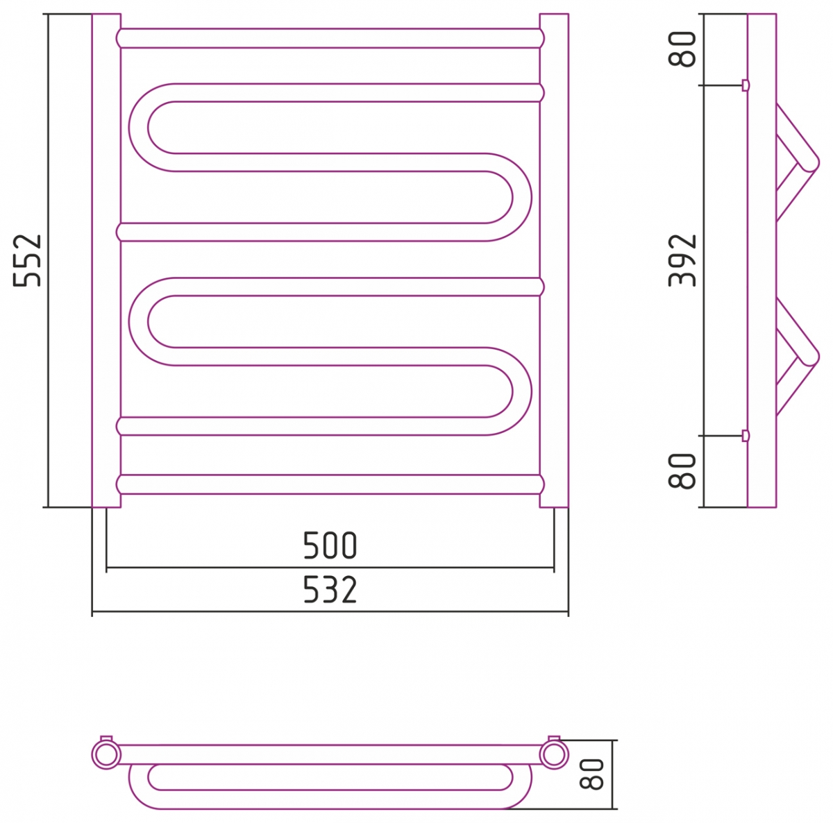 Полотенцесушитель комбинированный Сунержа Элегия-ПРОФИ 600x500. 00-5105-6050