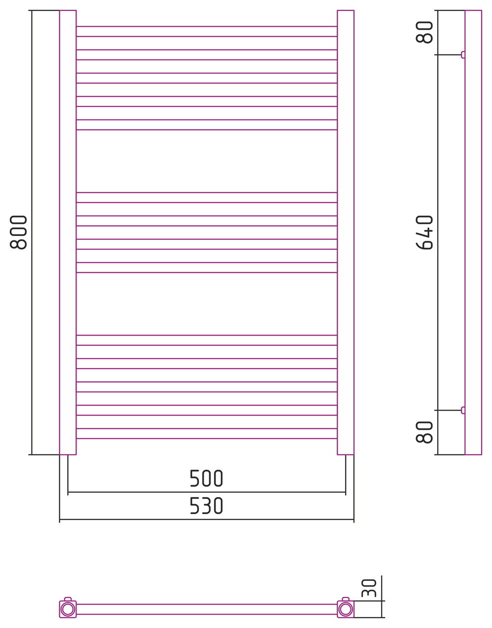 Полотенцесушитель комбинированный Сунержа Гусар-ПРОФИ 800x500