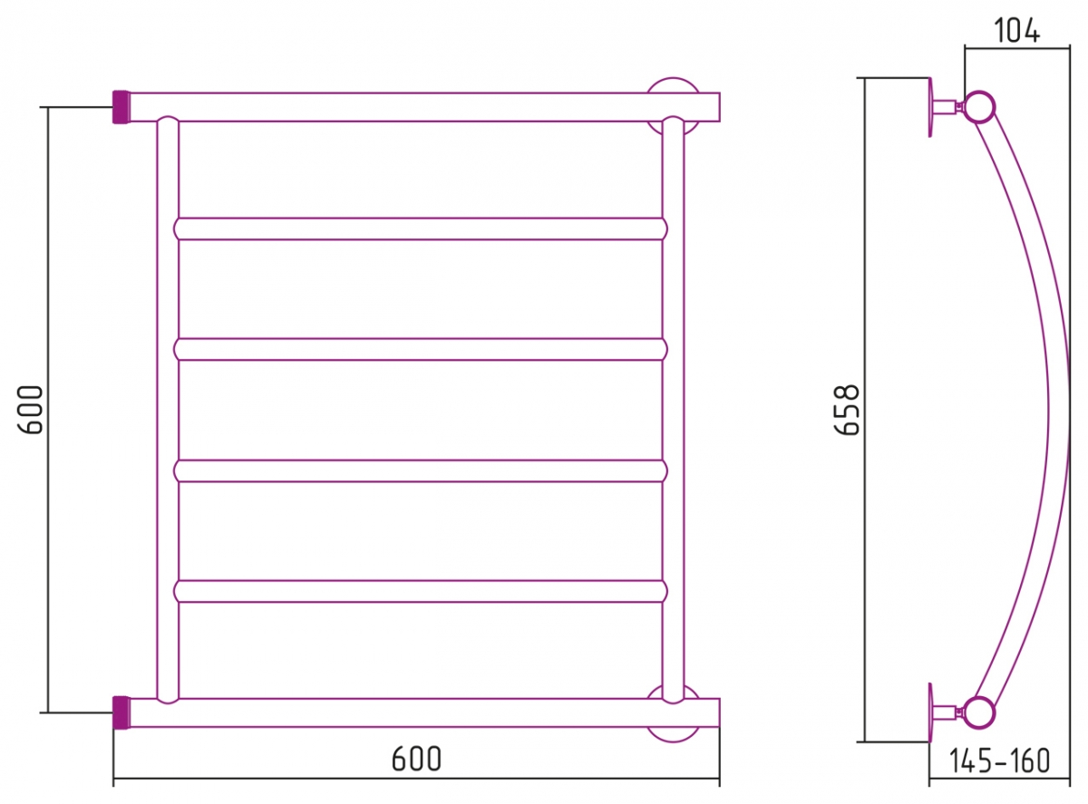 Полотенцесушитель водяной Стилье Минор 0602 600x600