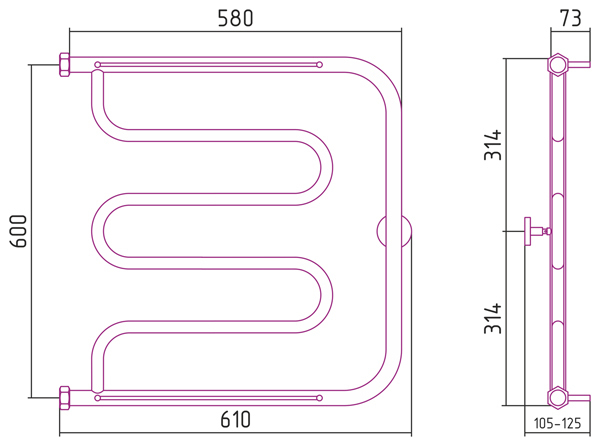 Полотенцесушитель водяной Сунержа Лира 600x600 +2 полки