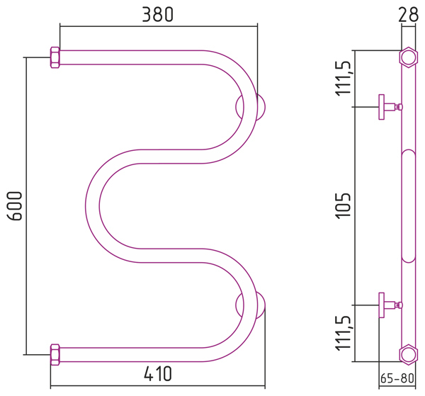 С одной стороны – это весьма обычные, и вполне классическое исполнение внешнего вида, водяного полотенцесушителя Сунержа.