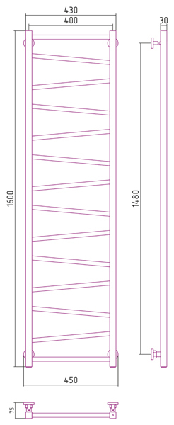 Внешние габариты (высота х ширина х глубина) (мм) : 1600х450х75