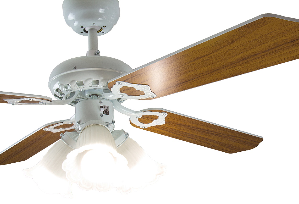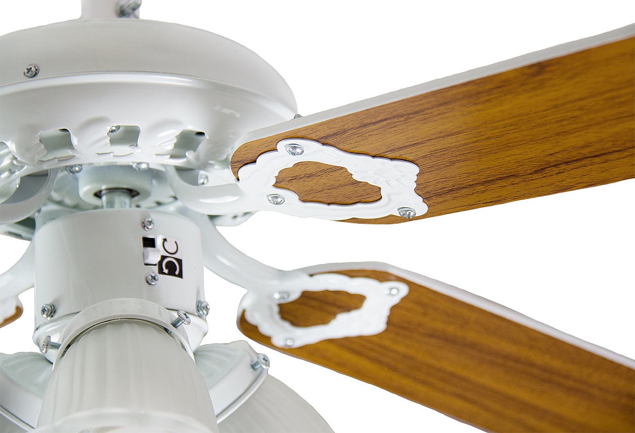 - лопасти двусторонние, т.е. разного цвета с каждой из сторон, это позволяет выбрать наиболее подходящий для интерьера цвет, при этом обратная часть лопасти будет повернута вверх к потолку и ее цвета видно не будет;