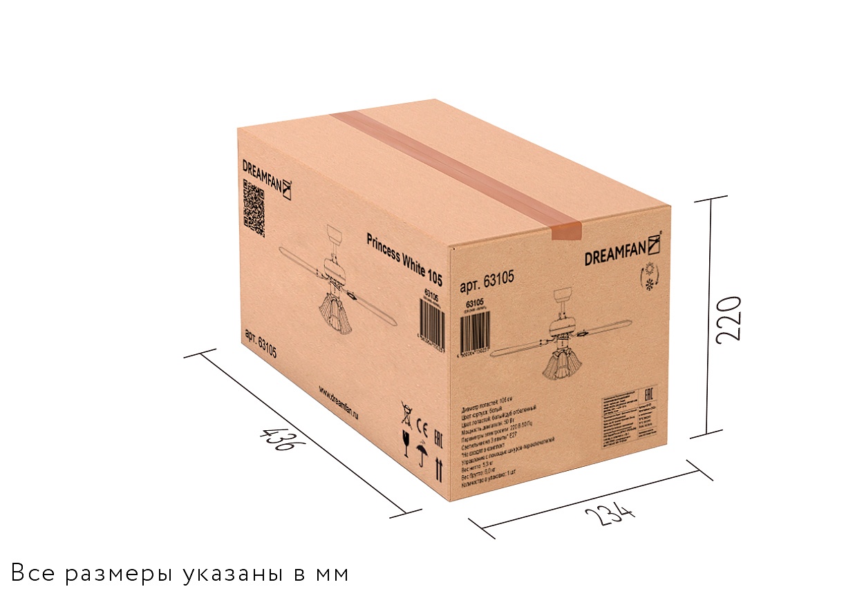 - диаметр Dreamfan Princess White 63105DFN - 105 см;