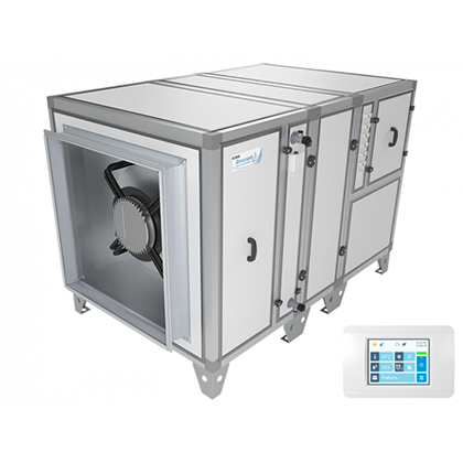 - Приточная установка с охладителем водяного типа, водяным нагревателем и смесительным узлом с 2-х или 3-х ходовым клапаном (узел подбирается исходя из типа водоснабжения).