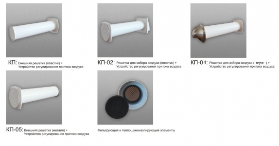Клапан приточный состоит из пластикового воздуховода длиной от 0,5 до 1м, который монтируется в наружную стену здания. С уличной стороны он закрывается уличным воздухораспределителем.