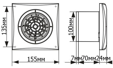 Укороченный фланец – позволит установить вентилятор в вентиляционную шахту или присоединить к воздуховоду Ø100, 125 мм.