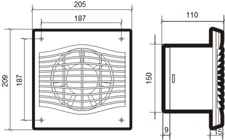 Отличаются тонкой лицевой панелью, выступающей всего на 15мм от поверхности, на которой смонтирован вентилятор;