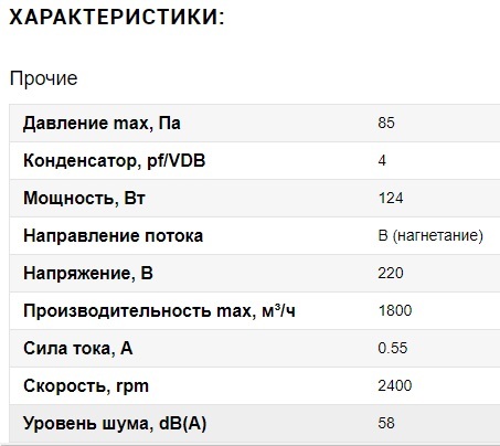 Давление max, Па85 Конденсатор, pf/VDB4 Мощность, Вт124 Направление потокаB (нагнетание) Напряжение, В220 Производительность max, м³/ч1800 Сила тока, А0.55 Скорость, rpm2400 Уровень шума, dB(A)58