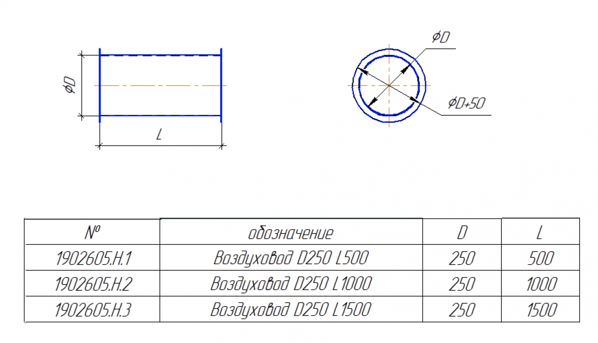 Воздуховод круглый 250 мм 1,5 м полипропилен